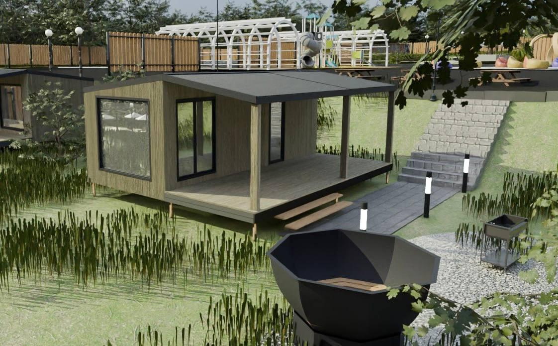 В планах — открытие точки питания, возведение модульной гостиницы и организация глэмпингов, рассчитанных на 28 посетителей. На рисунке также можно заметить небольшой бассейн. В настоящее время инвестор занимается подготовкой строительной площадки.