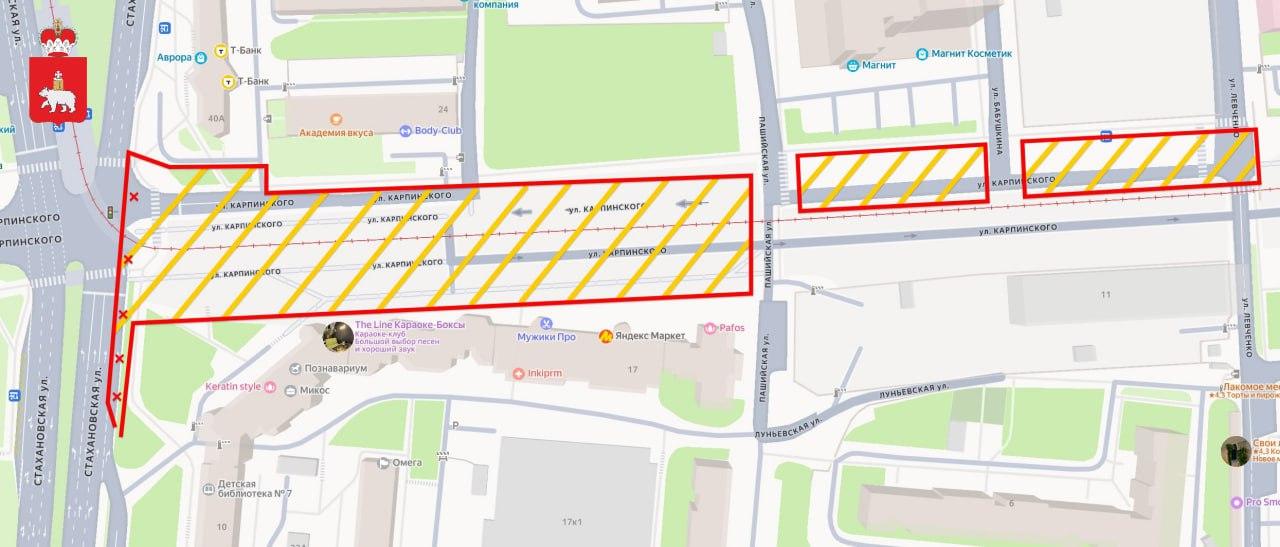 На пересечении улиц Карпинского, Стахановской и Мира в Перми изменится движение