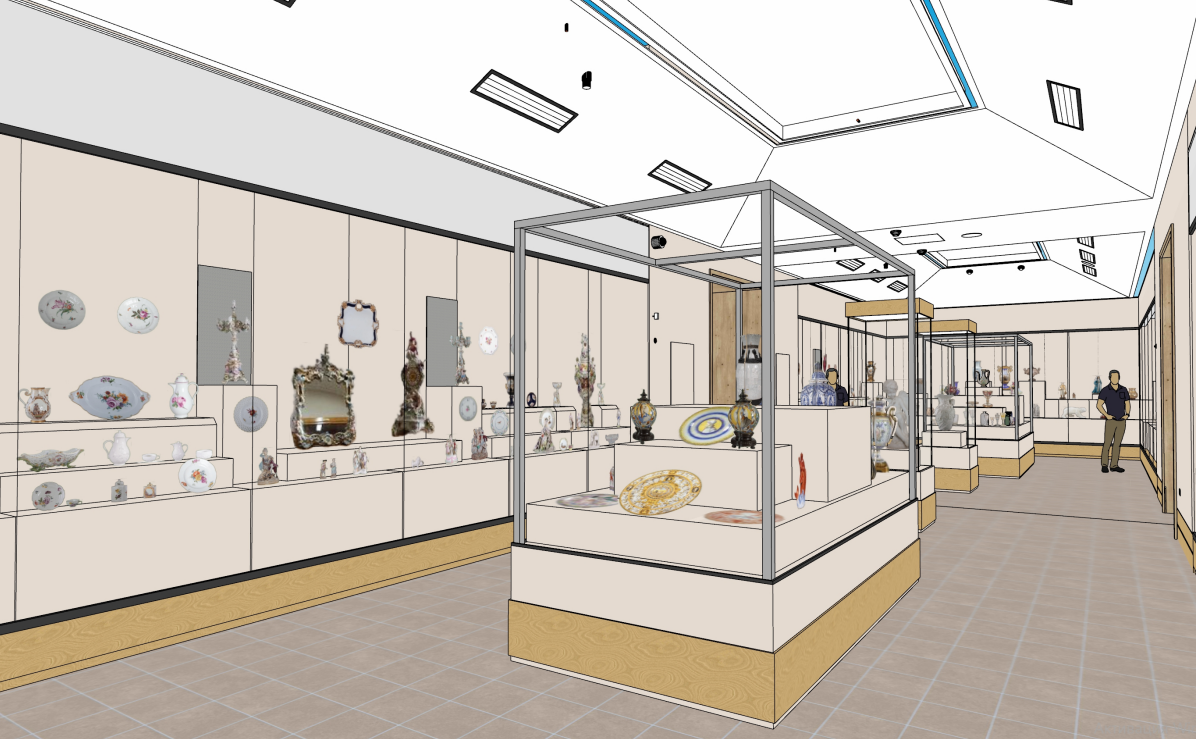 В перечень работ, которые предстоит выполнить компании, выигравшей торги, входят малярные работы, изготовление и установка дополнительного оборудования, монтаж экспозиции, настройка системы видеонаблюдения и охранной сигнализации. Также подрядчик должен установить освещение и разместить фарфоровые изделия. Все используемые материалы должны быть новыми, а конструкции по своим параметрам (форма, размер, цвет) — соответствовать проектной документации.