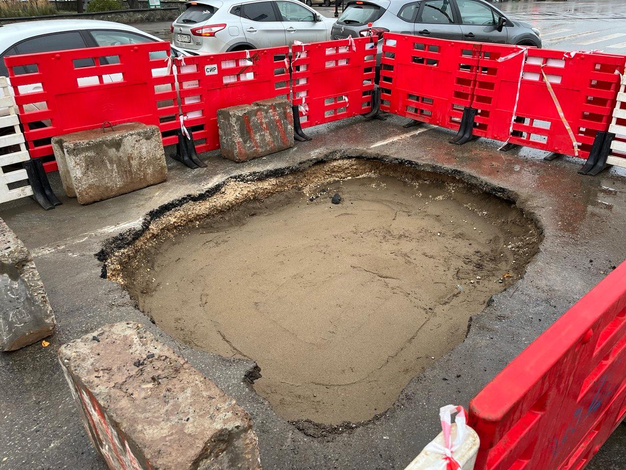 Напомним, 16 октября, под весом дорожной техники произошло повреждение дорожного покрытия над участком сети водоотведения в этом месте. Здесь проходит самотечный канализационный коллектор диаметром 900 мм, который был введен в эксплуатацию в 1971 году. Бригада «НОВОГОРа» оперативно оградила место повреждения.