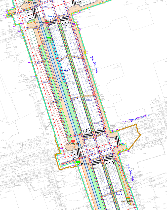 Проектируемый объект относится к магистральной улице общегородского значения регулируемого движения второго класса. Планируется обустройство четырёх полос движения шириной по 3,5 м, полос безопасности (0,5 м), разделительных полос, велодорожек, тротуаров (3 м), шумозащитных экранов. Протяжённость обновлённых участков дороги составит 2,1 км (по ул. Пушкина 1 км, ул. Революции 0,3 км, ш. Космонавтов 0,3 км, ул. Попова 0,5 км). Проектом предусмотрены локальные очистные сооружения, канализационные насосные станции и реконструкция существующих трамвайных путей.