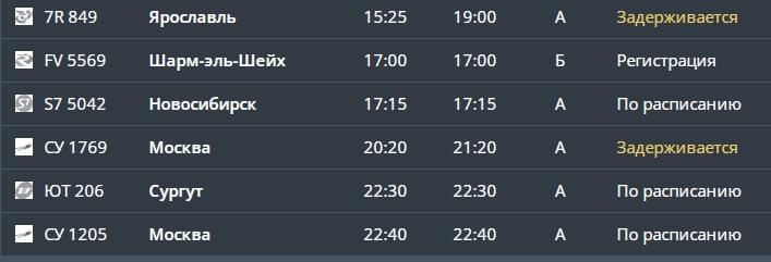 Также с задержкой отправится рейс СУ 1769 «Аэрофлота», следующий из Перми в Москву (аэропорт Шереметьево). Вместо запланированного времени 20:20 отправление состоится в 21:20. Начало посадки на воздушное судно Airbus объявлено на 20:40.