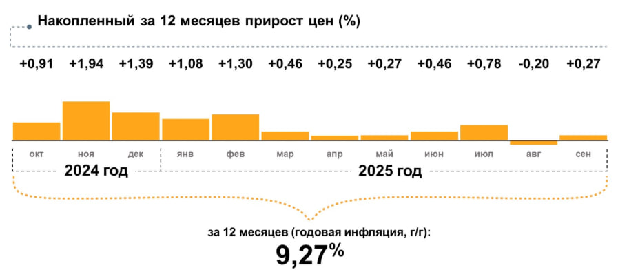 Годовая инфляция в Пермском крае по итогам сентября выросла до 9,27%