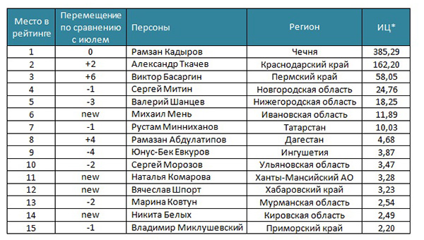 Главу Прикамья в августе опередили лишь Рамзан Кадыров и Александр Ткачёв