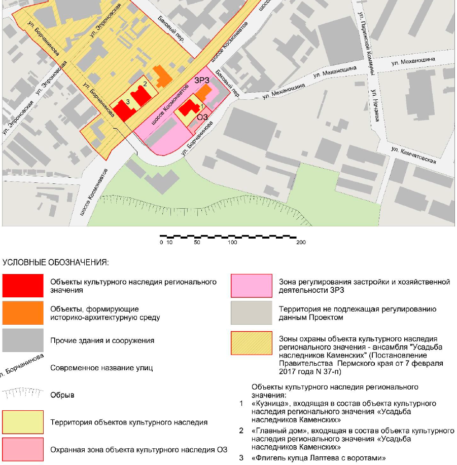 Проектная документация была подготовлена ООО «Студия-М» на основании договора с ООО «СЗ «Талан-Пермь». Как отмечается в акте ГИКЭ, по результатам проведённых исследований предлагается установить охранную зону объекта и зону регулирования застройки и хозяйственной деятельности (ЗРЗ). Проектируемые зоны охраны примыкают к зонам охраны другого объекта культурного наследия — ансамбля «Усадьба наследников Каменских».