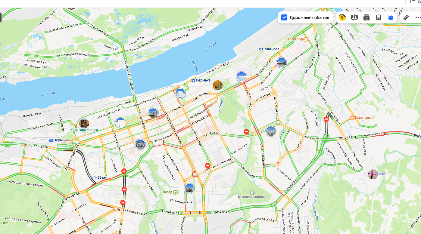 Вечером 1 декабря в центре столицы Прикамья скапливаются пробки на главных магистралях. Движение затруднено на улицах Попова, Ленина, Революции, Пушкина, Сибирской, Островского, Куйбышева и Уральской, Чкалова и Мира. Пробки также скопились на ш. Космонавтов (ниже ЦКР в сторону Индустриального района) и на Комсомольском проспекте.