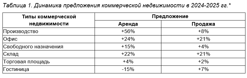 В текущем году рынок коммерческой недвижимости корректируется относительно 2024 года, когда был зафиксирован рекордный спрос. На этом фоне наблюдается снижение спроса на 9% в сегменте продажи и на 14% — в сегменте аренды.