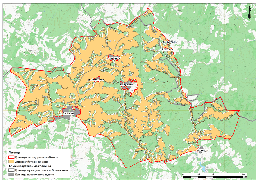 В границы ООПТ не включены участки, относящиеся к населённым пунктам с. Лузино, деревни Антоново, Ковриги, Пустынь и Ерёмичи. Также за границами остаются деревни Заполье и Ключи.