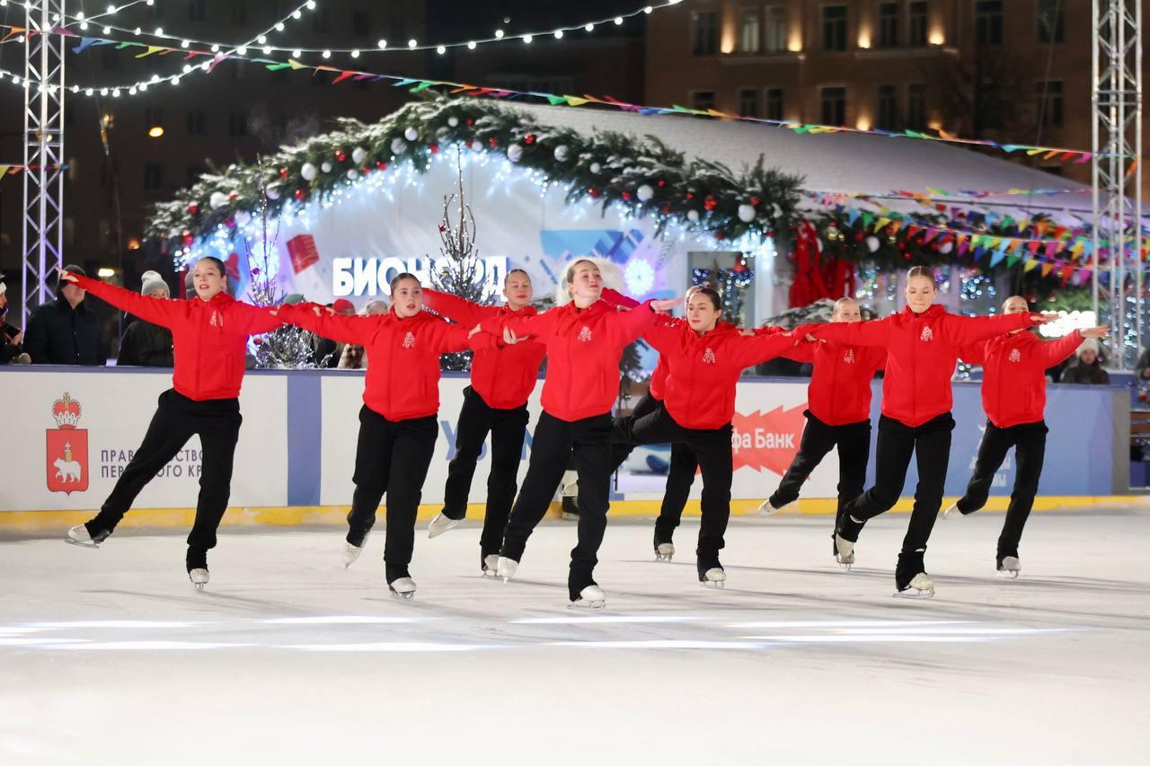На площади перед Театром-Театром в Перми 29 декабря торжественно открыли «Бионорд Каток». В этот же день состоялось открытие фестиваля зимних видов спорта. К новому сезону здесь расширили ледовую арену и впервые оборудовали профессиональную дорожку для керлинга.