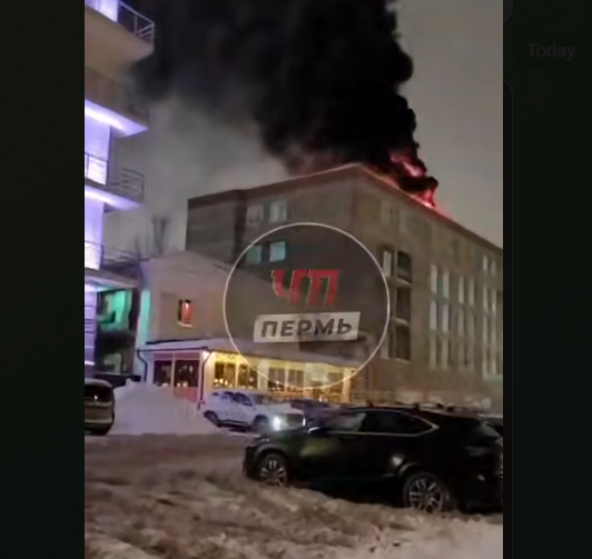 В ночь на 10 января в Перми по ул. Окулова, 4 произошёл пожар на стройплощадке, где возводится отель «Азимут». Видео происшествия опубликовал telegram-канал «ЧП Пермь».