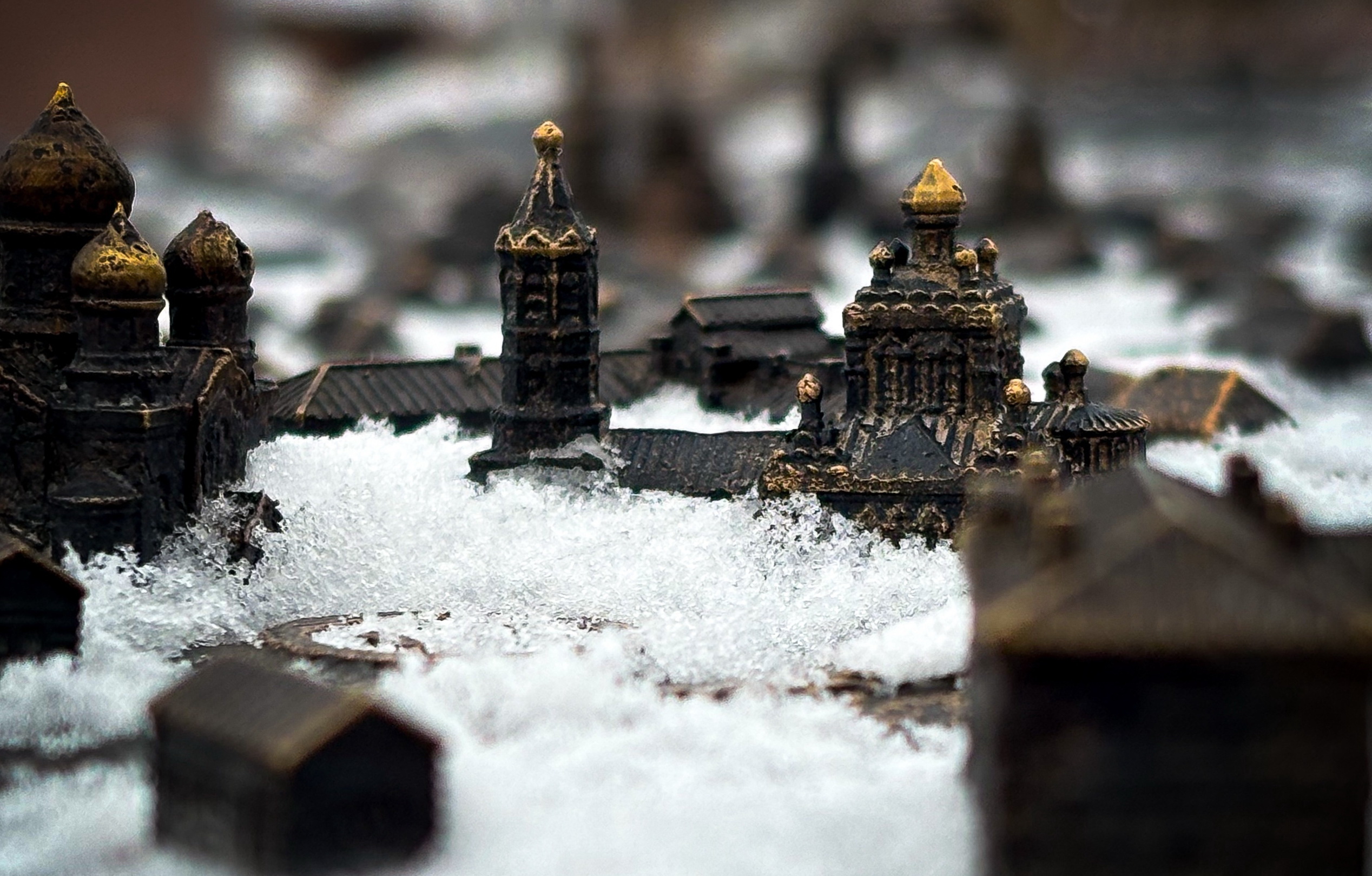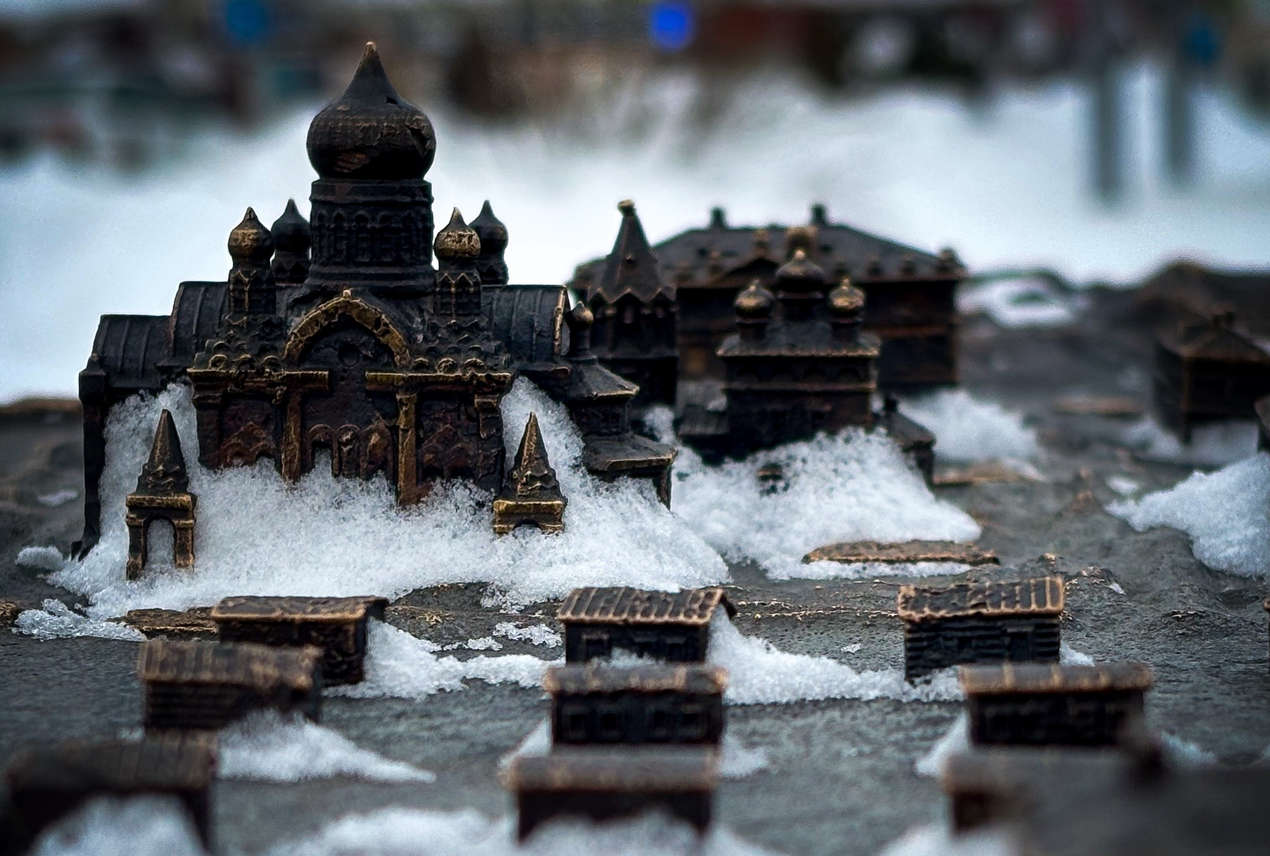Миниатюрный город населяют миниатюрные персонажи — извозчики, купцы и другие горожане.