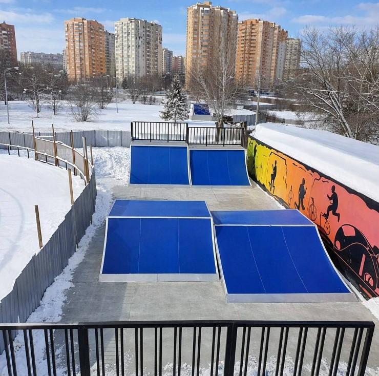 Новый каркасный скейт-парк призван стать полноценной тренировочной зоной. В ней предусмотрен фан-бокс с мягким покрытием, который подходит для начинающих райдеров. Здесь также можно безопасно отрабатывать новые трюки и постепенно переходить к более сложным элементам.