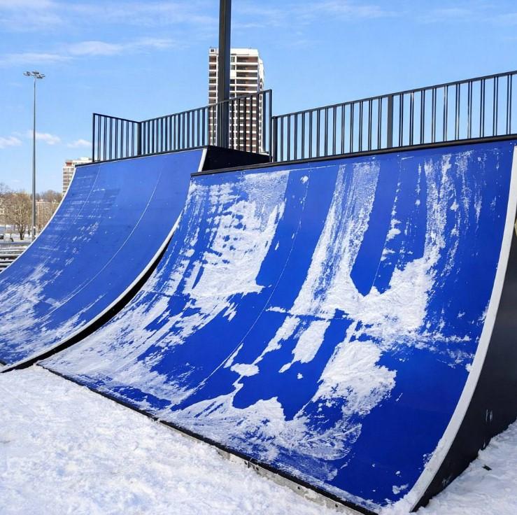 Компания выполнила монтаж парка всего за 18 дней. Элементы изготовлены из металлического каркаса, ламинированной и ФСФ фанеры с защитным покрытием толщиной 2 мм. Это делает их устойчивыми к влаге, механическим повреждениям и другим внешним воздействиям. На поверхности отсутствуют элементы креплений, что повышает безопасность.