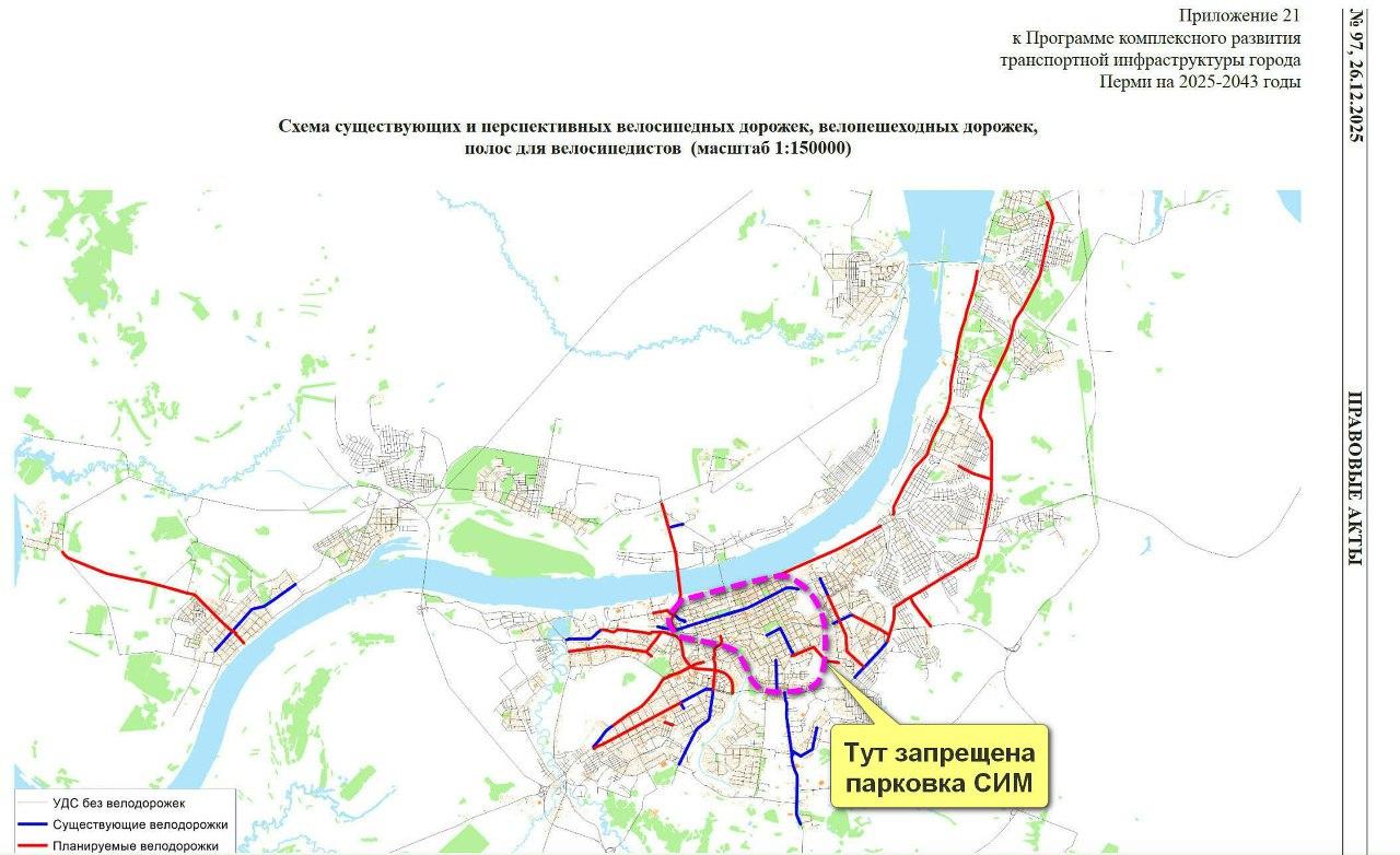 Как сообщил «Новому компаньону» руководитель сообщества «Велосипедизация Перми» Александр Синявский, программу комплексного развития транспортной инфраструктуры города до 2043 года разрабатывают уже три года. Часть обозначенных на схеме «велодорожек» запроектирована, но в проектах они предусмотрены с разрывами (без велопереездов).