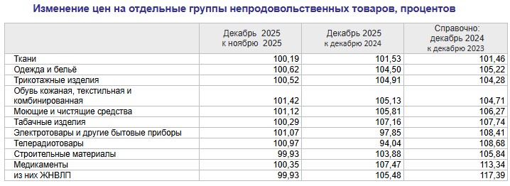 Цены на галантерею, мебель, электротовары, бытовые приборы, средства связи, телерадиотовары, ювелирные изделия и стеклянную посуду увеличились на 0,1-5,8%. Моющие и чистящие средства, а также парфюмерно-косметические товары подорожали в пределах 0,2-6,2%.