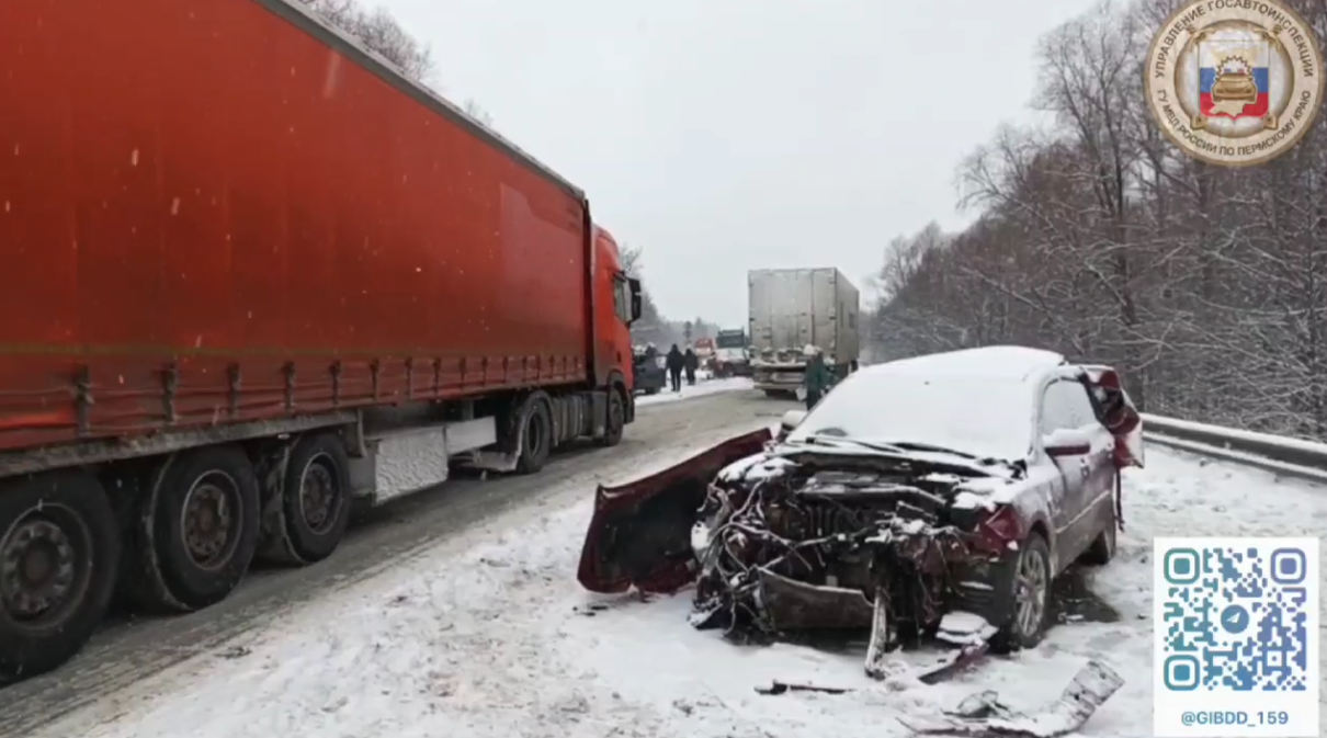 Напомним, массовая авария произошла 9 марта рядом с Усть-Сыны. Водитель «Мазды-3» 1984 г.р. возвращалась с двумя несовершеннолетними детьми в Пермь. Днём на 1047-м км трассы Кострома—Шарья—Киров—Пермь она заехала в колею, потеряла контроль над управлением и допустила неуправляемый занос машины на встречную полосу, затем наезд на металлическое дорожное ограждение.