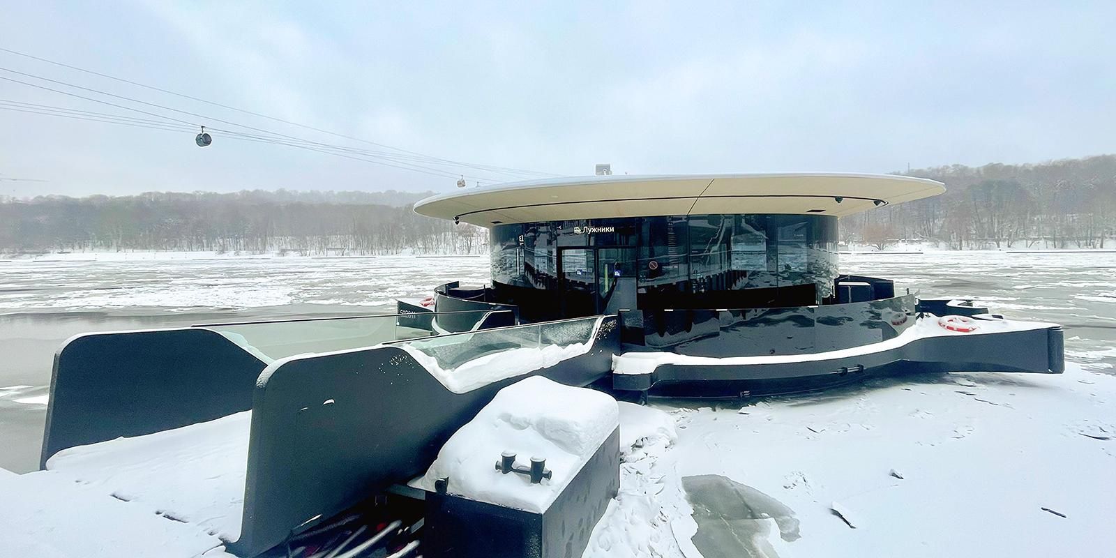 Плавучий причал диаметром 16 м сможет вмещать до 80 пассажиров, а также заряжать электросуда во время стоянки — это уникальная разработка, аналога которой нет в мире. Он, как и другие остановки регулярных речных маршрутов, полностью работает от электричества и не наносит вреда окружающей среде. Для комфорта пассажиров здесь установлены вендинговые аппараты и медиаэкраны с расписанием, есть удобные диваны и санузел.