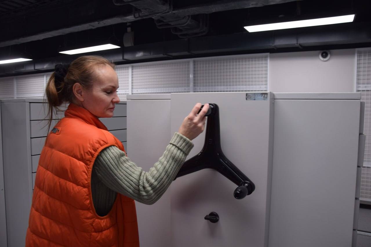 В фондохранении в Спасо-Преображенском соборе все три фонда находились вместе, тогда как в новом корпусе на «Заводе Шпагина» для каждого собрания предусмотрено отдельное специализированное помещение. Хранилища оснащены передвижными драйверами — мобильными системами, которые позволяют эффективно использовать пространство и размещать значительное количество экспонатов. Такое решение не только создает резерв для пополнения фондов, но и делает работу сотрудников более удобной.