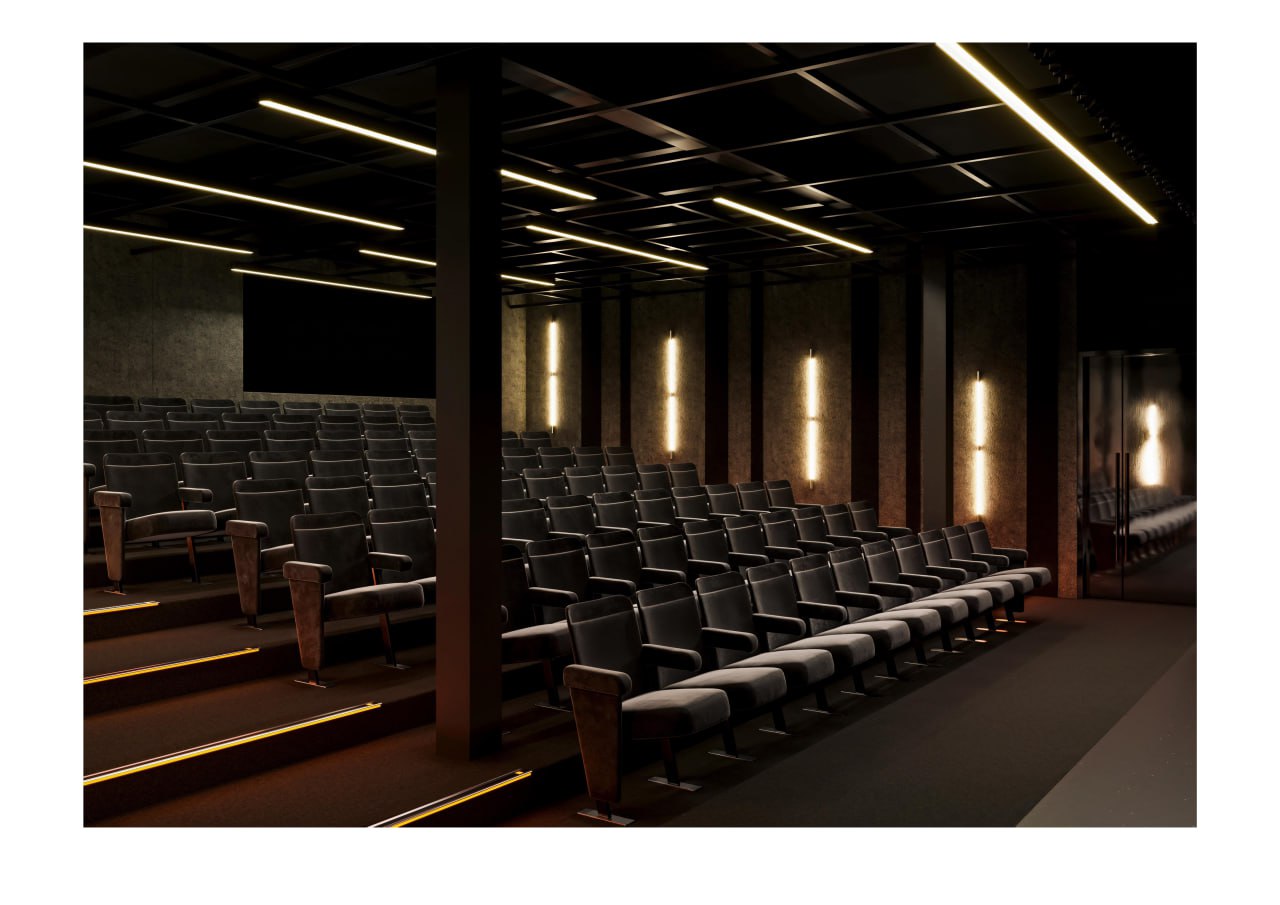 Зал выдержан в строгом стиле и рассчитан на 85 мест. Благодаря трибунам-трансформерам он сможет превращаться в black box.