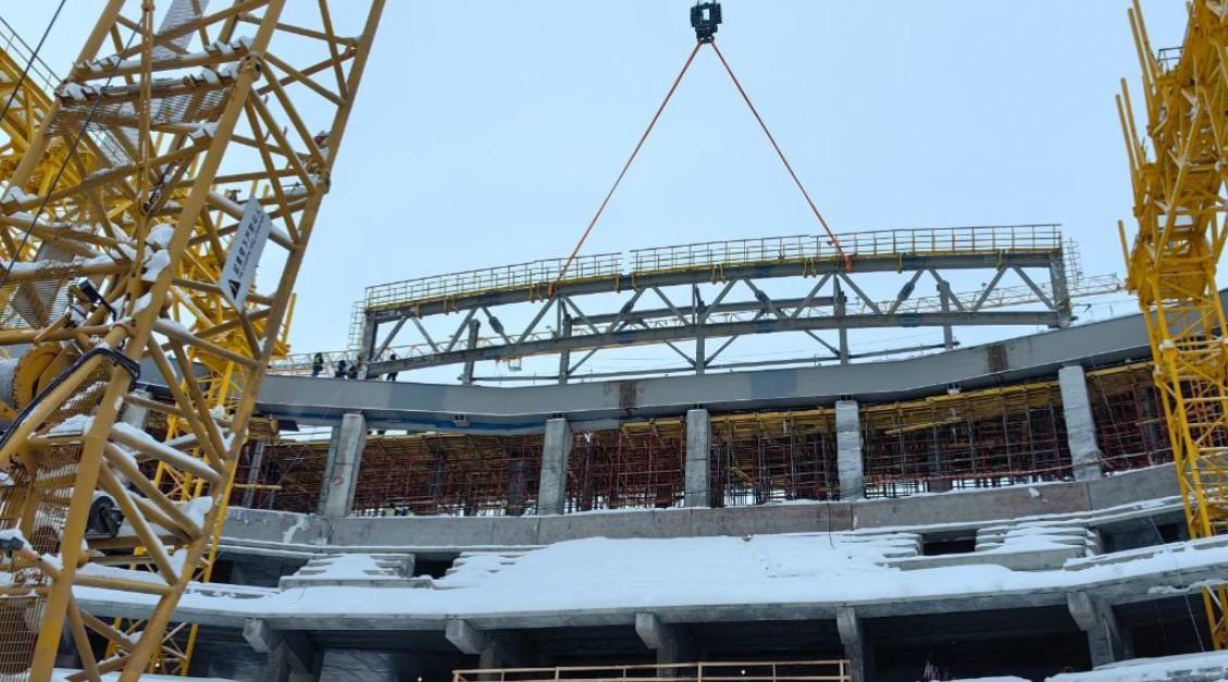 На «Пермь-Арене» установили первую ферму большепролётной конструкции кровли