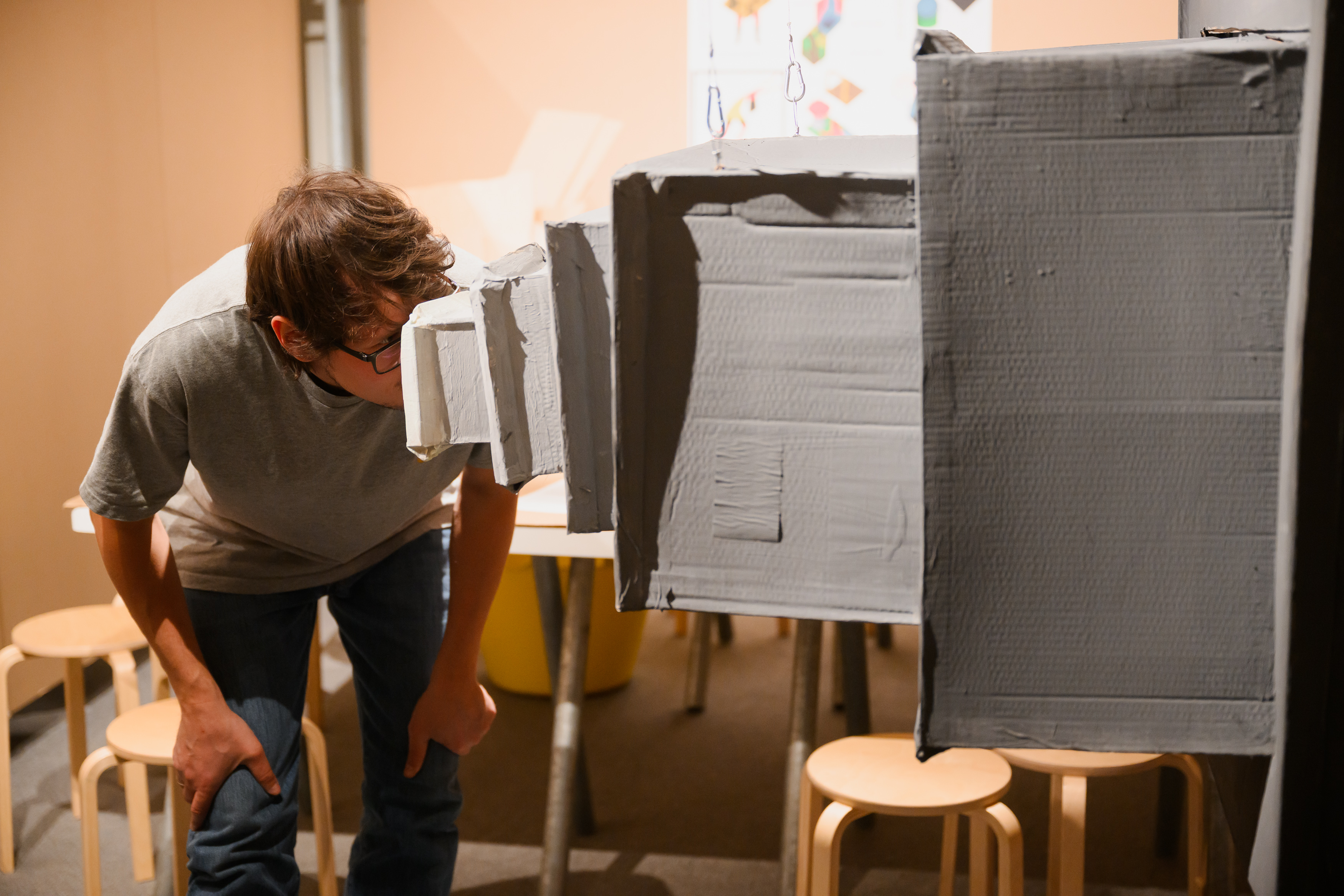 Выставка представляет работы петербургского художника Алексея Сахнова, который сам является воспитанником ПНИ. Его произведения, в частности, картонные конструкции различных размеров, исследуют темы социальной изоляции, быта в закрытых учреждениях и поиска личного безопасного пространства. Сотрудники арт-пространства «Тут» отметили, что посетители выставки часто задавали вопросы об устройстве интернатов, причинах попадания туда людей и условиях их жизни.