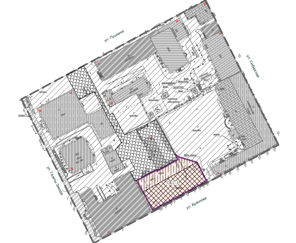 Документация по планировке территории касается квартала в Свердловском районе города, ограниченного улицами Пушкина, Сибирской, Краснова и Газеты «Звезда». Здесь запланировано размещение объектов капитального строительства жилого назначения не более шести этажей, предельной высотой до 22 м и площадью 1,1 тыс. кв. м, нежилого назначения — высотой не более одного этажа и площадью 622 кв. м, коммунальной и инженерной инфраструктуры — до двух этажей площадью 2,5 тыс. кв. м.