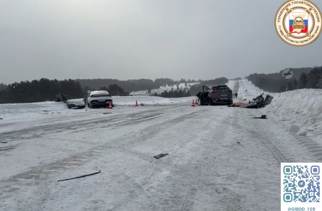 Госавтоинспекция работает на месте смертельного ДТП, случившегося 8 марта 2026 года около 9:20 на 57 км трассы Карагай—Кудымкар в Пермском крае.