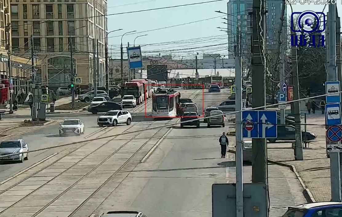 Трамвай перегородил перекрёсток ул. Борчанинова и ул. Луначарского в Перми из-за ДТП с легковушкой