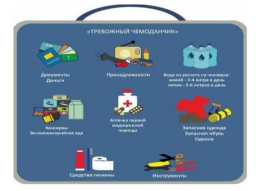 При сигнале оповещения рекомендуется брать с собой документы, ценные вещи, запас воды и продуктов («тревожный чемоданчик»). Время непрерывного пребывания укрываемых в заглублённых помещениях может составлять до 12 часов.