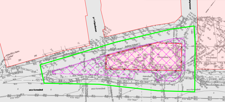 Для выполнения работ будет изъят земельный участок площадью 1,8 тыс. кв. м на ш. Космонавтов, 347 с расположенным на нём сооружением. В данный момент здесь разрешено строительство магазинов и торговых комплексов, разрешённый вид использования планируется изменить на «Земельные участки (территории) общего пользования».