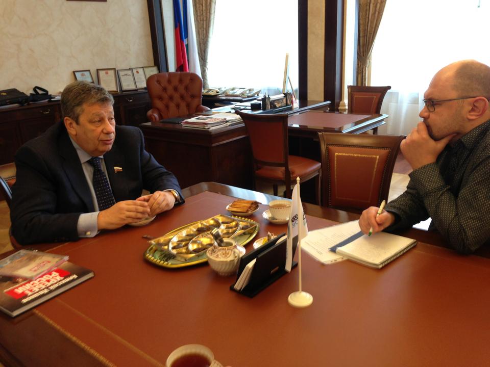 Писатель Алексей Иванов приехал к сенатору от Свердловской области, экс-мэру Екатеринбурга Аркадию Чернецкому, чтоб собрать материал для новой книги.
