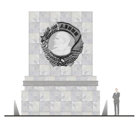 По словам Грибанова, предлагается обшить металлический каркас памятного знака вентилируемым фасадом из керамо-гранитной плитки: она может имитировать мрамор или белый крапчатый гранит. Также с такой поверхности легко счищать граффити.